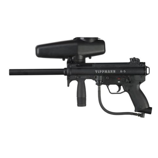 The Tippmann A-5 is the most popular scenario marker ever produced. The A-5 features a durable aluminum body, inline bolt system, front and rear sling mounts, low profile hopper and 8.5” high performance ported barrel. The A-5 is known for its ability to be customized with many aftermarket accessories and features Tippmann’s World Class 2-year Warranty.
